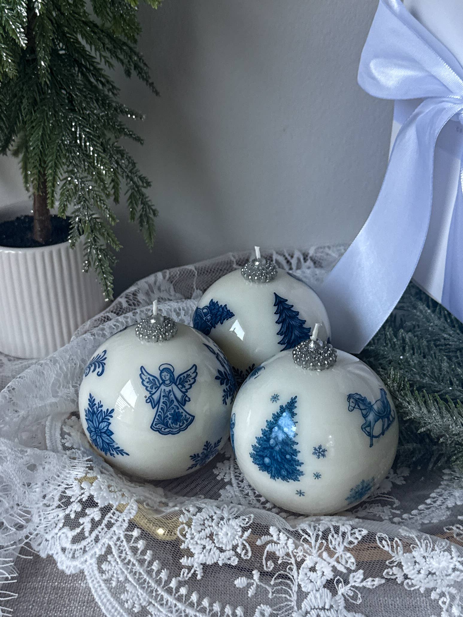 🎄Handcrafted Christmas ornament-style candles that capture the magic of the season. Each unscented soy and beeswax candle comes gift-ready in a holiday box, making it a heartfelt present for family, friends, or coworkers. Each created to bring warmth, joy, and nostalgic holiday charm into your home. Unique, luxurious look that creates a strong "wow" effect. ✨ Size: approx. 3 in 🕯️ Unscented — safe for gifting and shared spaces 🌿 Made from a blend of soy & beeswax 🎀 Ready to gift — comes in a kraft box with ribbon. Hand-poured in the USA 💡 Exclusive ornament-style design — made entirely of wax, including the silver topper They are an ideal addition to any holiday setting, bringing warmth, light, and a sense of luxury to your celebrations.