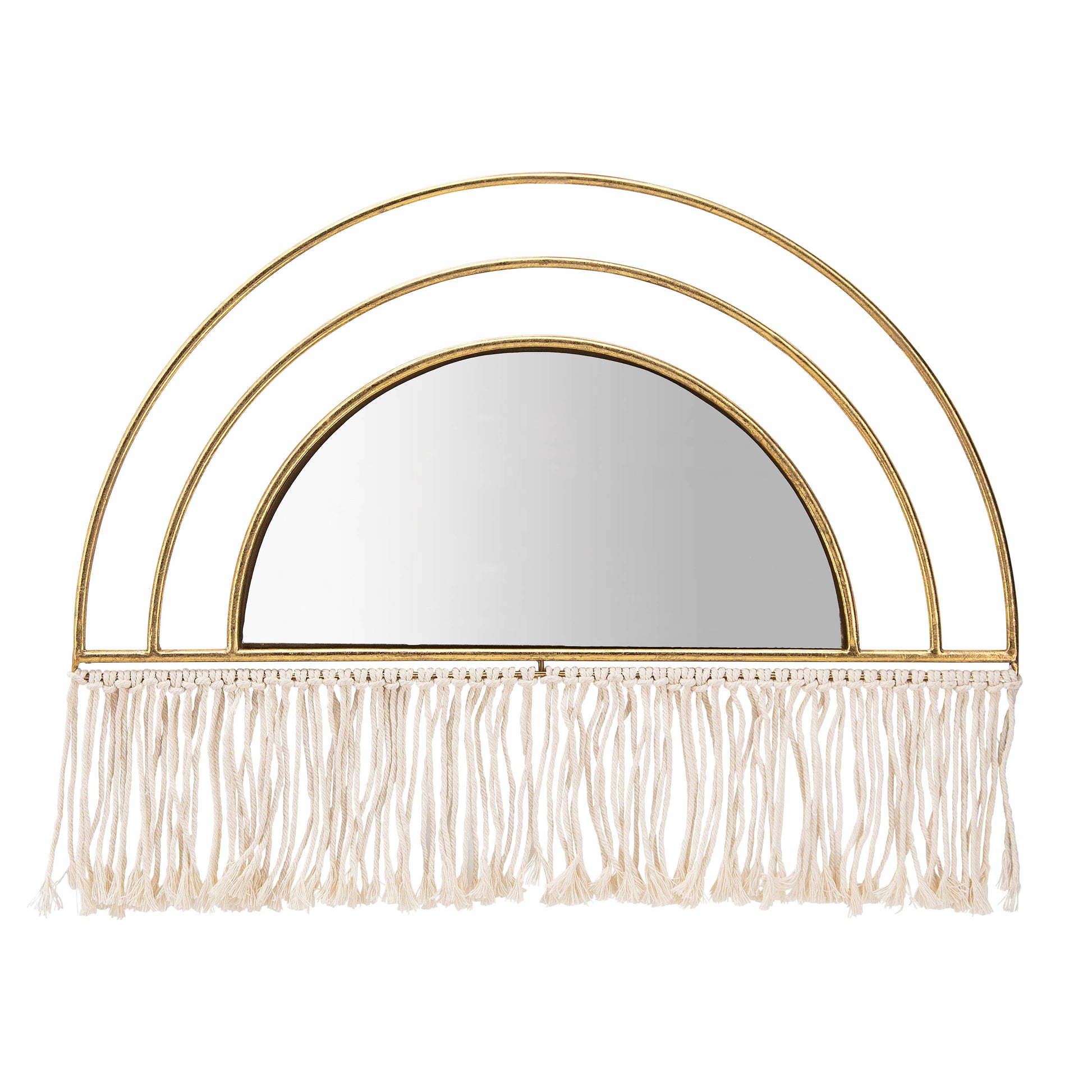Metal Wood Arched Wall Mirror Macrame Accents - Gold, 17 in.
