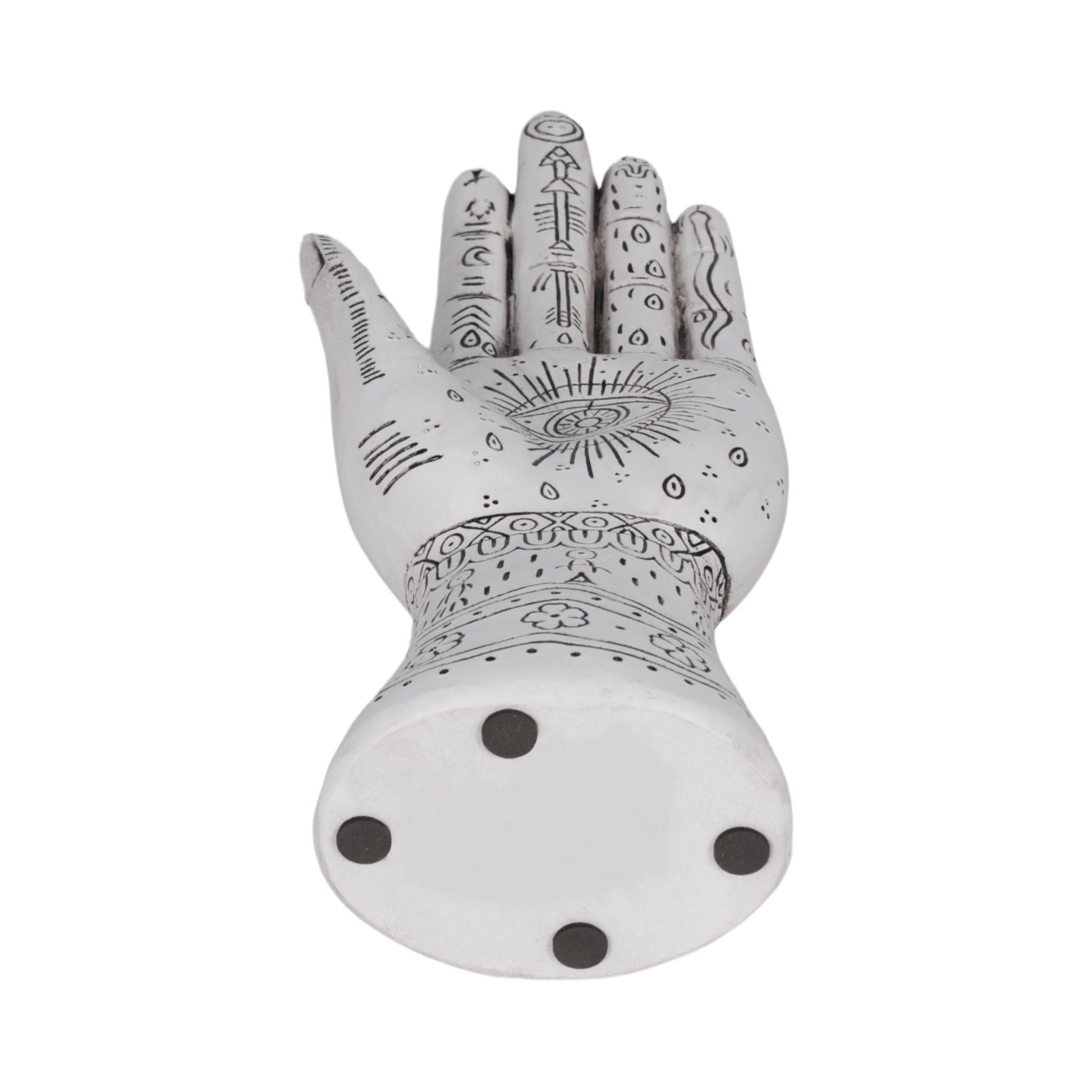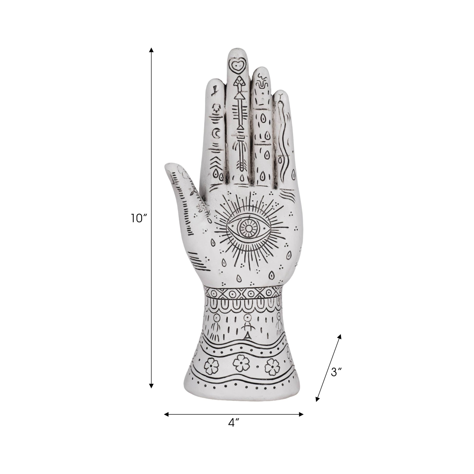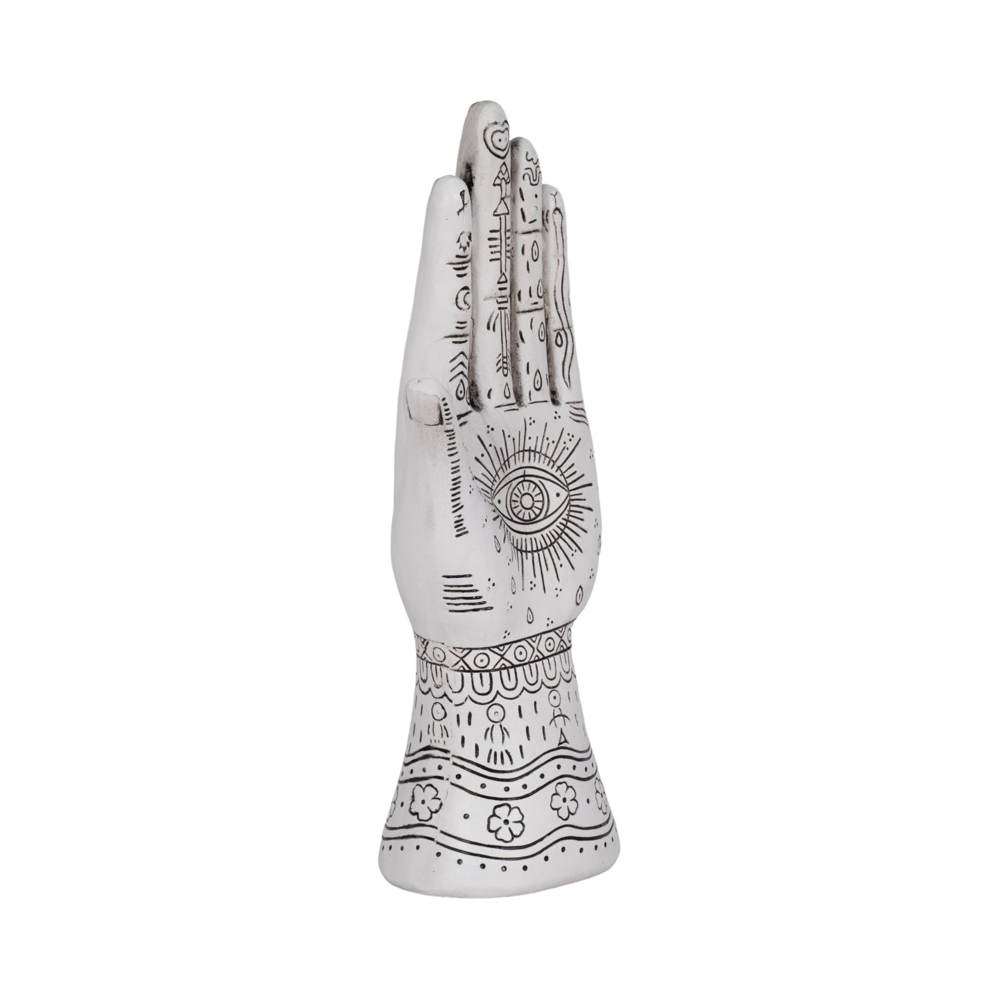 Resin Symbolic Eye Tattoo Hand Sculpture - White, 10 in.