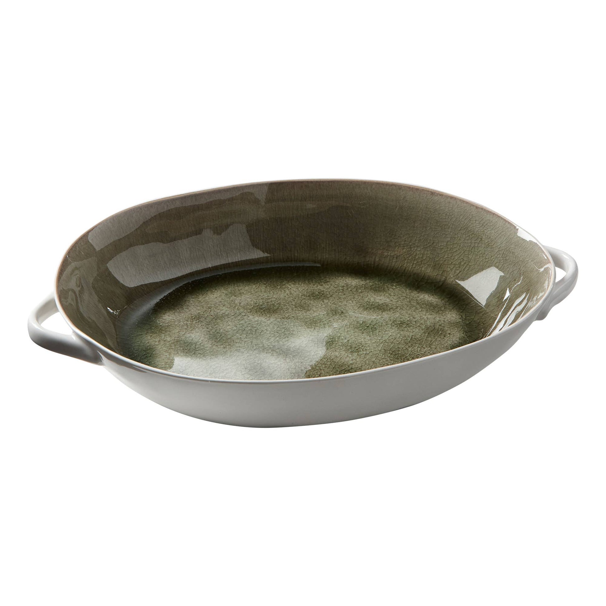 Beautiful on any surface, this porcelain bowl features a two-tone reactive glaze finish with a crackle exterior.