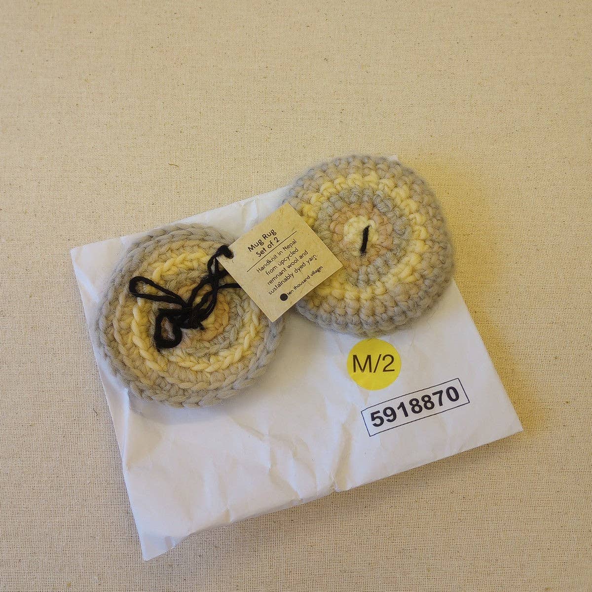 Protect your furniture from the damaging effects of hot and wet cups with these adorable coasters! These round mug rugs are crocheted from wool and feature versatile subdued pastel colors that complement any decor. Complete with a bow that makes this set of 2 ready for gifting! A Ten Thousand Villages Exclusive lovingly handcrafted in Nepal.